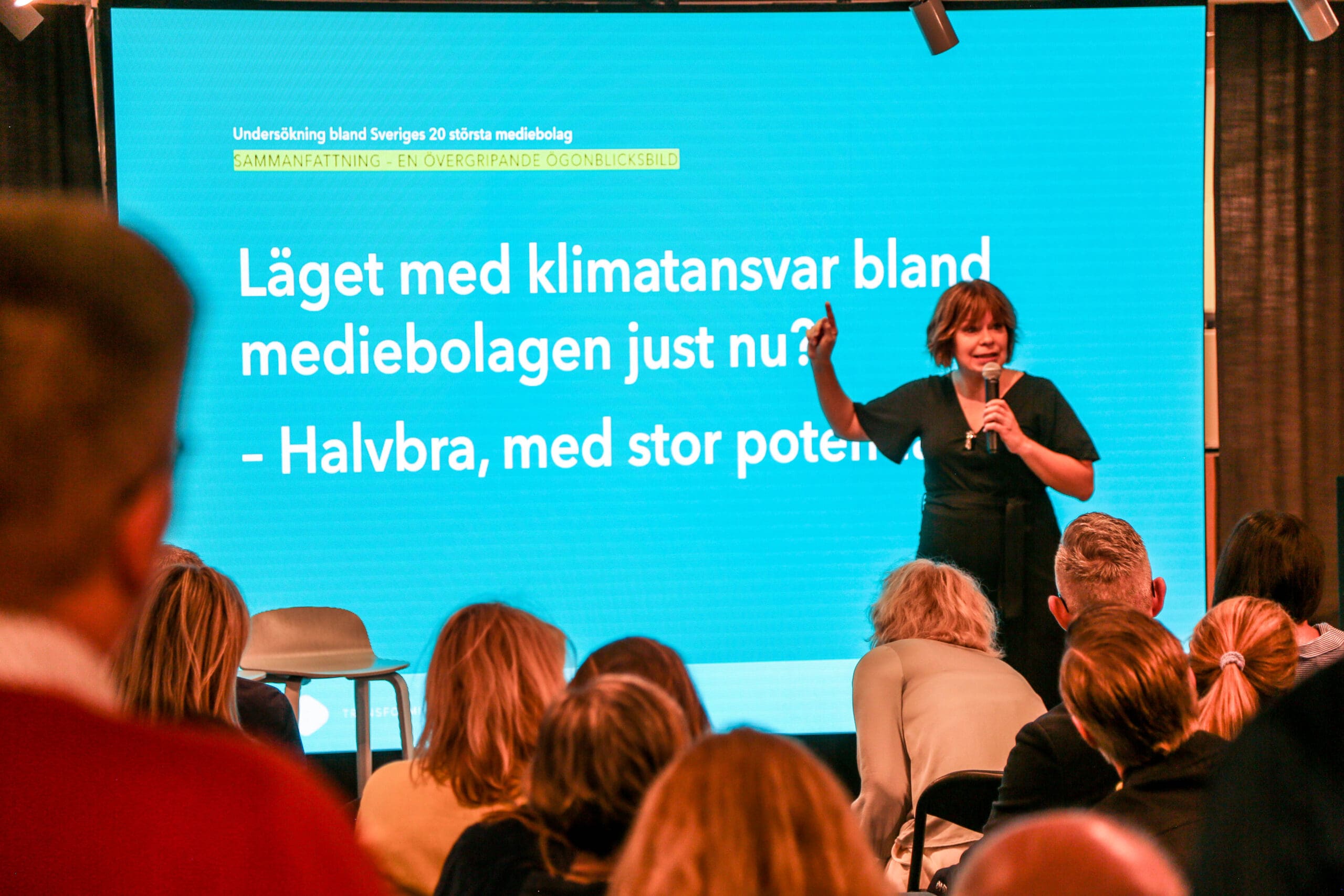 Seminariet beskriver utvecklingen av klimatansvar hos företag, med fokus på mål, åtgärder och transparens. Dessutom presenteras en ny undersökning som sammanfattar hur de 20 största mediehusen i Sverige jobbar med klimatansvar idag. Seminariet avslutas med dialog kring frågeställningen.