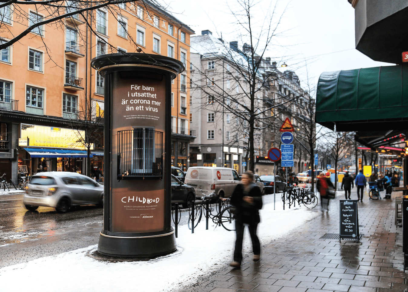När barn isoleras världen över, ökar risken för våld och övergrepp. Childhood arbetar för att åstadkomma de förändringar som situationen kräver för att skydda barnen under pandemin men även långsiktigt. JCDecaux stöttar Childhood i deras viktiga arbete genom en utomhuskampanj som vi jobbat fram tillsammans. Den här veckan syns kampanjen på våra fina pelare i Stockholm, Göteborg och Malmö.