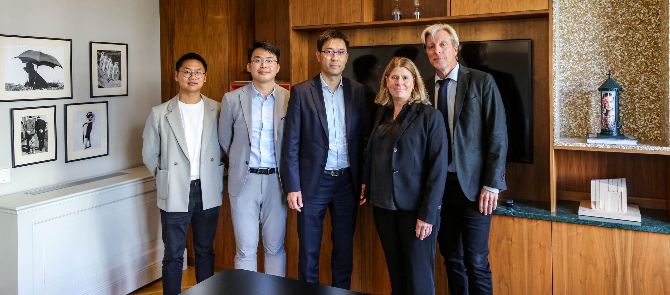 På bild: Fr h: Magnus Heljeberg, VD JCDecaux, Malin Andersson, Asset Director JCDecaux, Richard Yang, VD AOTO, Mike Liu, Deputy General Manager, Joe Wu, Sales Director