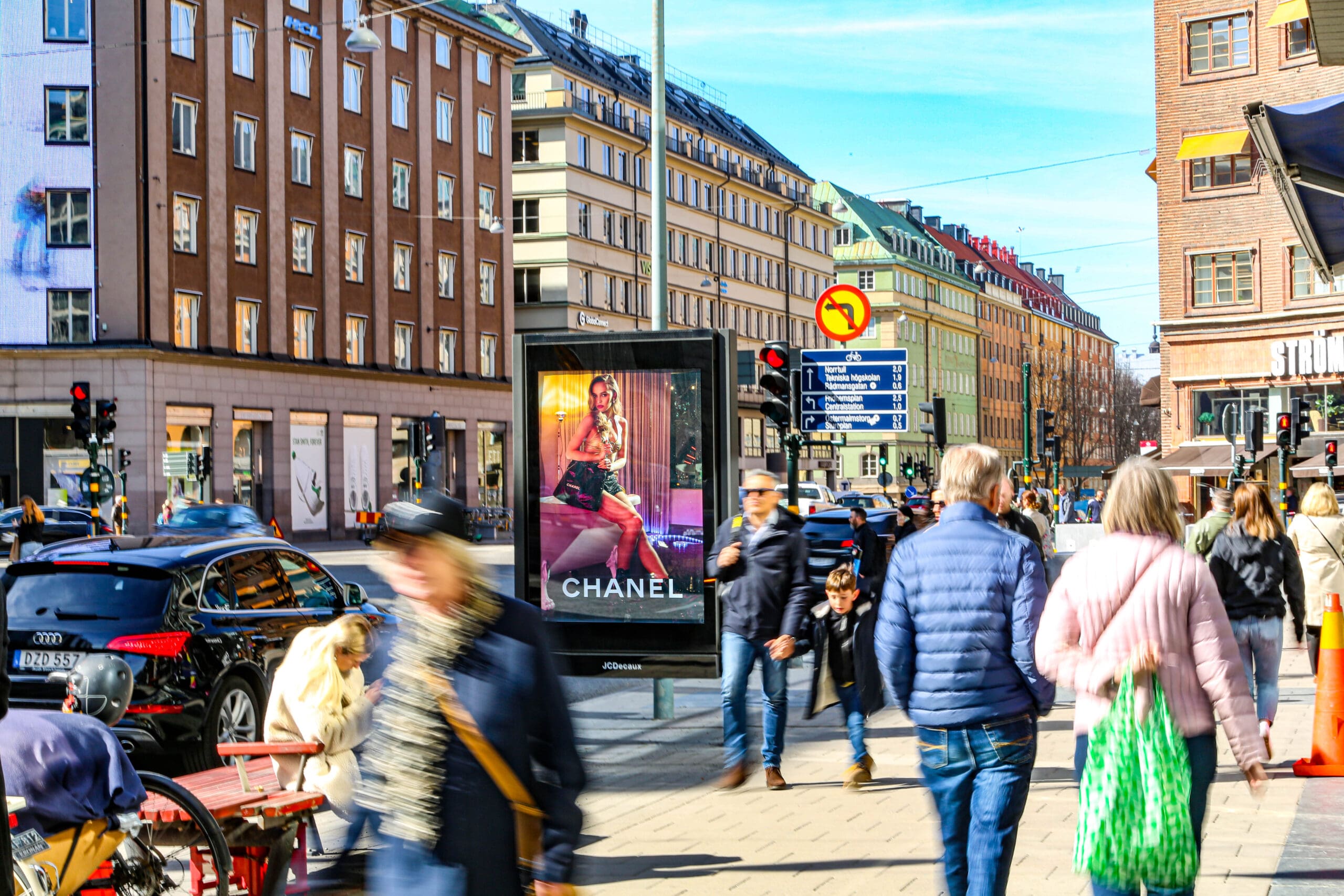 Med en bakbelyst yta, skyddad av en robust glasskiva, garanterar Eurosize optimal synlighet och premiumkänsla dygnet runt oavsett årstid. Dessutom är formatet perfekt anpassat för kreativa installationer, det vi kallar Innovate – för dig som vill ta din utomhuskampanj till nästa nivå. Vi redovisar klimatavtryck per kampanj och klimatkompenserar i samarbete med ClimatePartner.